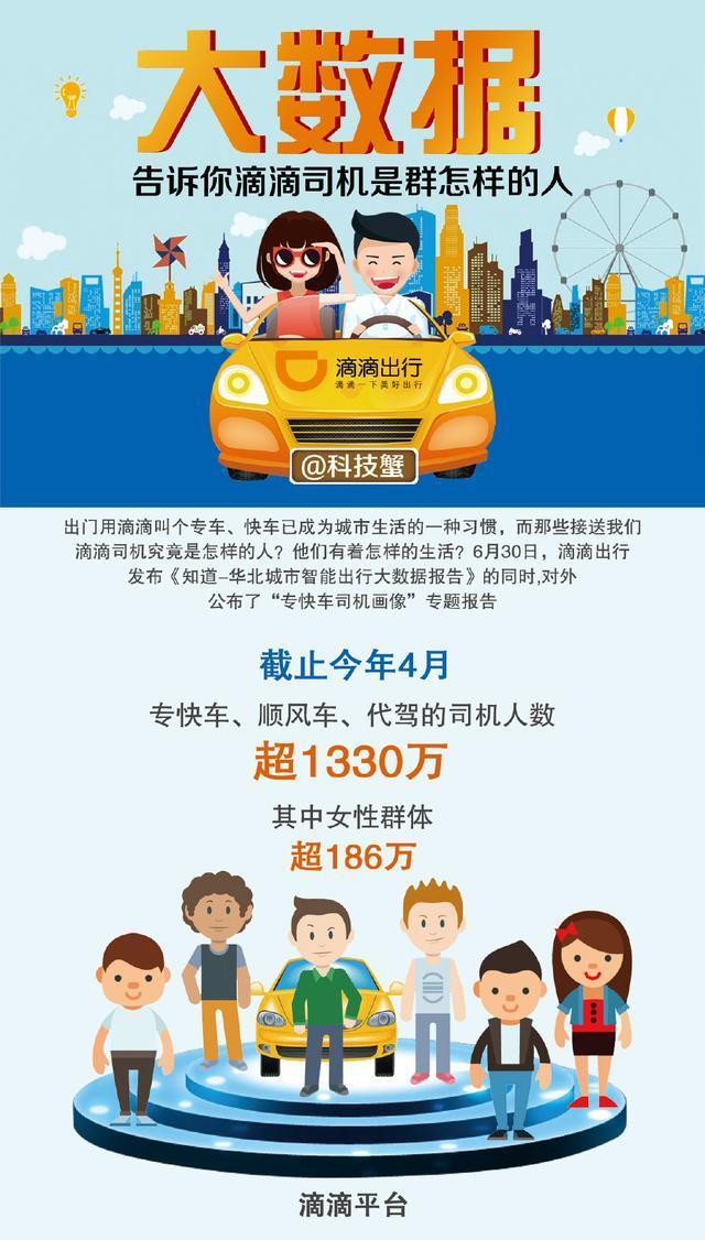 (电子商务研究中心讯) 出门用滴滴已然成为一种生活习惯,而接送偶们的滴滴司机又是怎样的一群人了?根据滴滴出行发布的大数据报告,泥萌不妨随着财报君来瞧瞧,滴滴司机的画像吧!