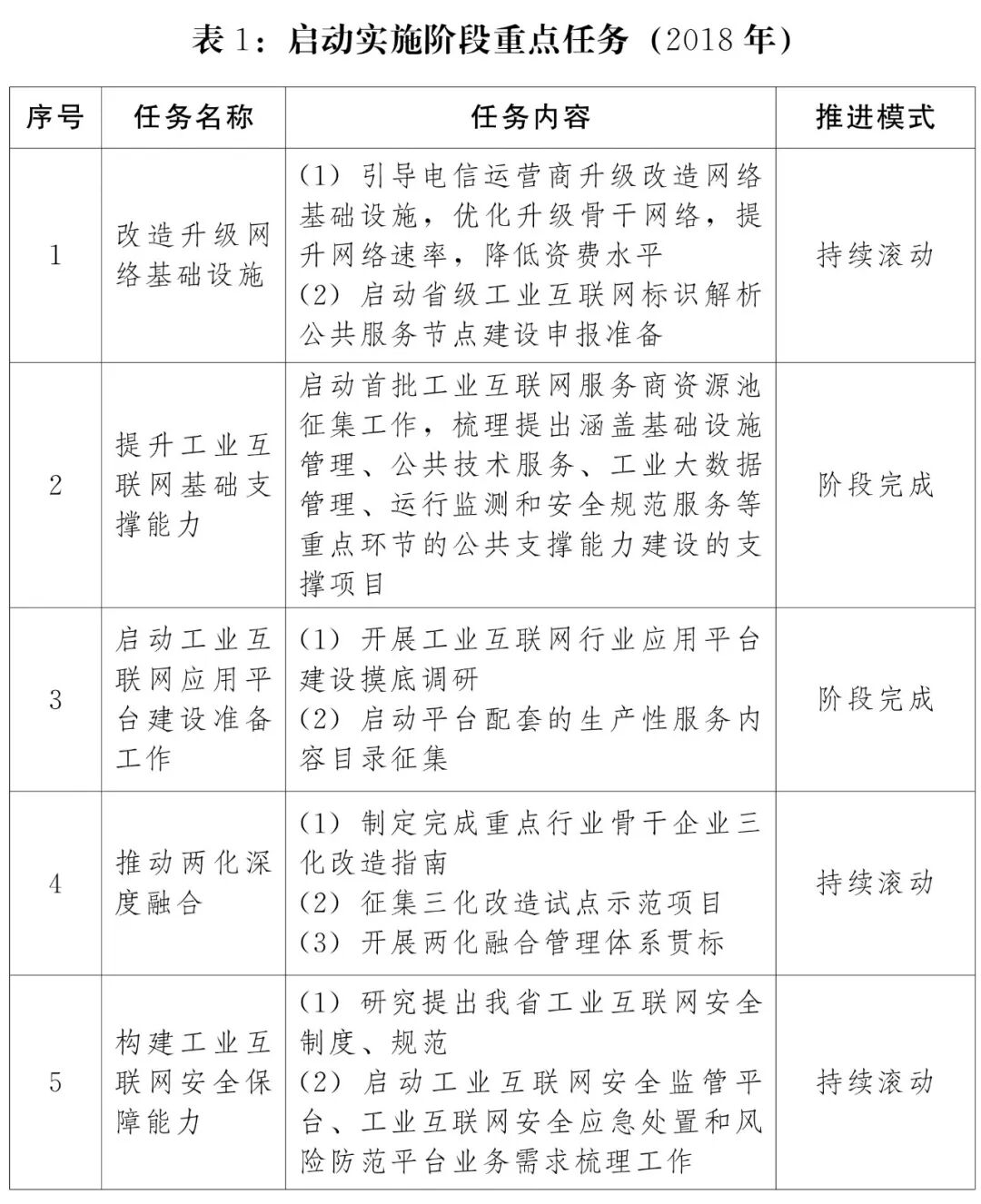 建设完善工业互联网基础设施、应用平台、服务内容;大力推动两化深度融合,全面推动企业上平台应用;重点推动行业级平台建设与应用,启动新业态新模式创新试点;完善工业互联网平台支撑、内容服务和支撑体系(详见表2)。