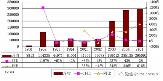 小鹏汽车2021年第一季度营收为29.5亿元,较上年同期的4.12亿元增长616%,上一季度营收为28.5亿元。
