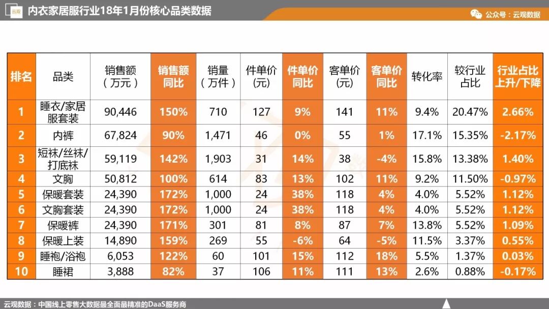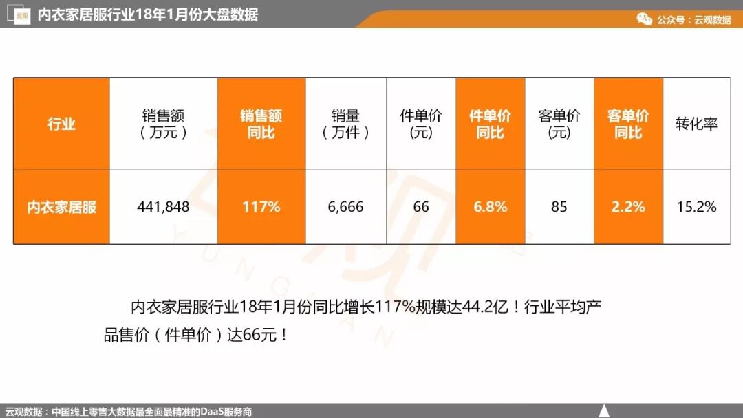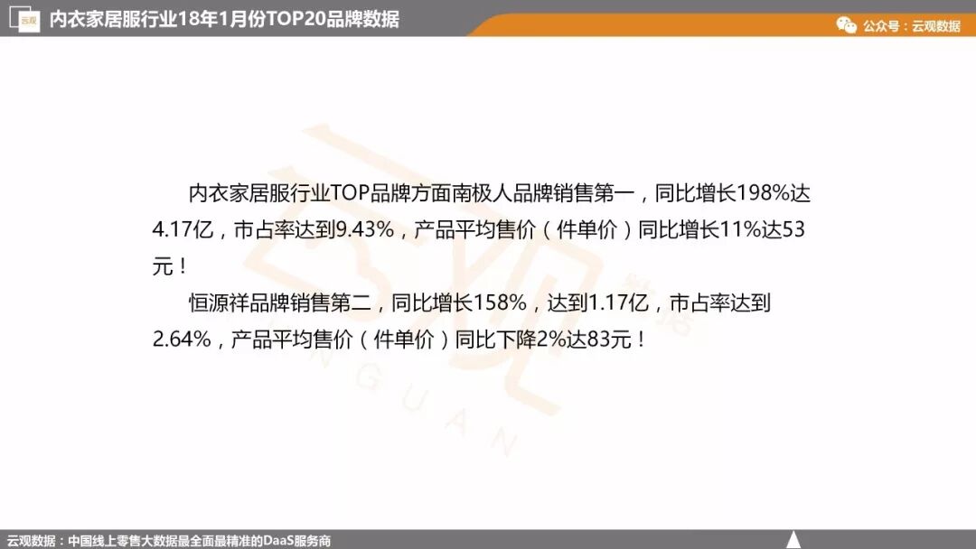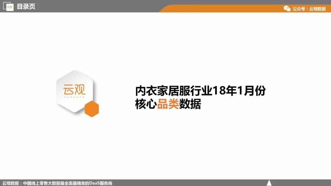 云观咨询:《内衣家居服行业2018年1月份天猫数据报告》(PPT)