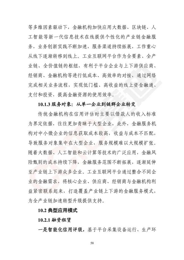 (网经社讯)日前,中国电子信息产业发展研究院(赛迪研究院)联合信通院、一所、四院、五所等部属单位和海尔、东方国信、用友、树根、航天云网、浪潮、华为、富士康、阿里云、徐工信息等十大跨行业跨领域工业互联网平台企业,编制了《工业互联网平台新模式新业态白皮书》,旨在为广大企业发展新模式新业态提供可落地的经验借鉴,切实加速企业数字化转型。
